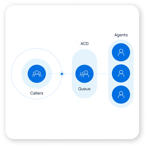 Calls can be placed in a queue during high call traffic times, ensuring that callers are served in the order they dialed.